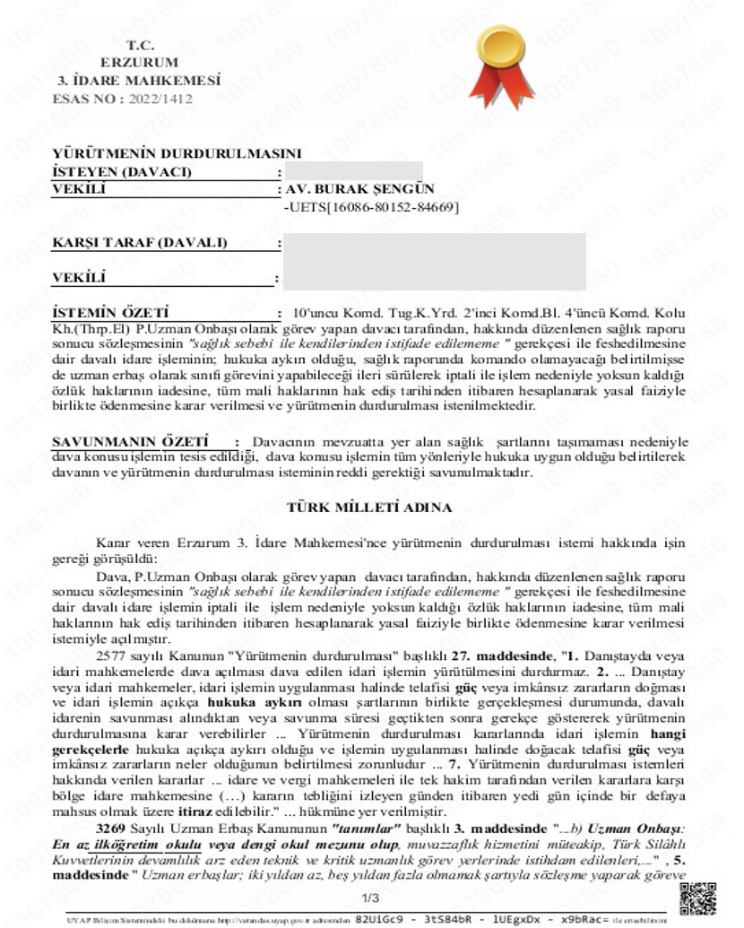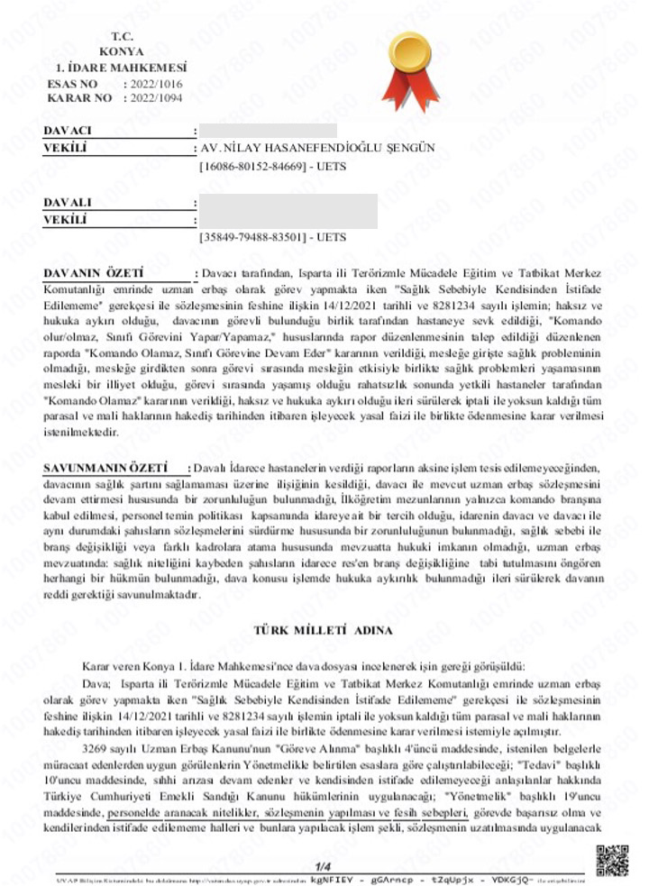 4 YIL KOMANDO BİRLİĞİNDE GÖREV YAPMAMIŞ, İLKOKUL VEYA LİSE MEZUNU OLUP DA HAKKINDA KOMANDO OLAMAZ RAPORU DÜZENLENMİŞ PERSONELİN SÖZLEŞMESİNİN FESHEDİLEREK İLİŞİĞİNİN KESİLMESİ HUKUKA UYGUN MUDUR?
