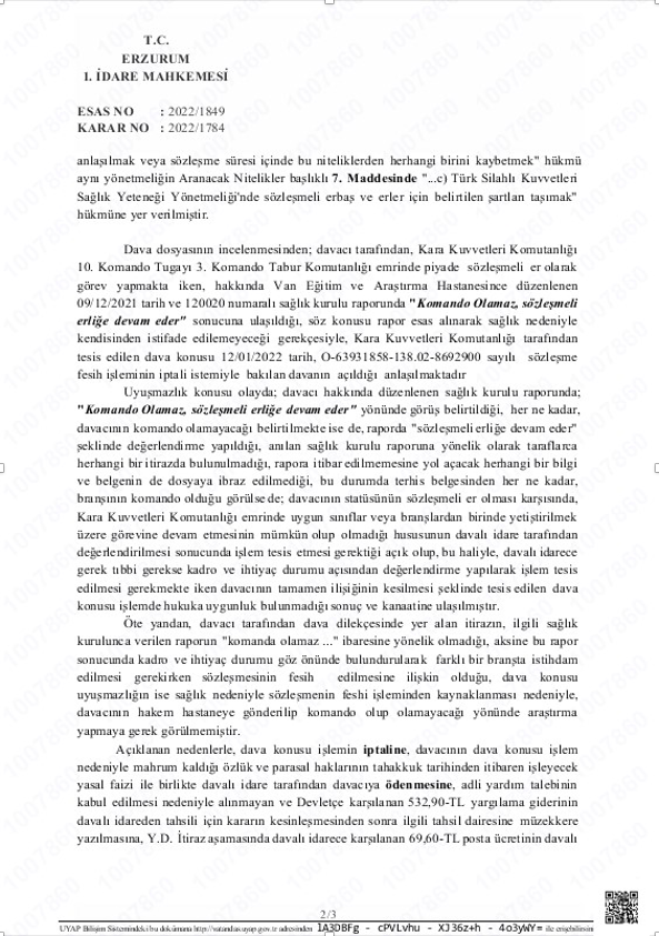 4 YIL KOMANDO BİRLİĞİNDE GÖREV YAPMAMIŞ, İLKOKUL VEYA LİSE MEZUNU OLUP DA HAKKINDA KOMANDO OLAMAZ RAPORU DÜZENLENMİŞ PERSONELİN SÖZLEŞMESİNİN FESHEDİLEREK İLİŞİĞİNİN KESİLMESİ HUKUKA UYGUN MUDUR?